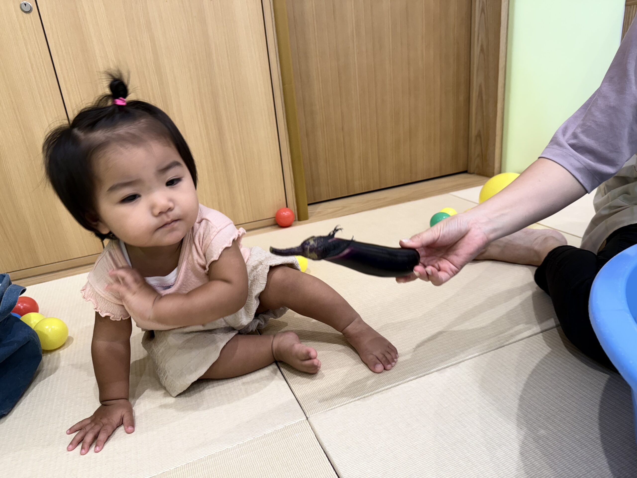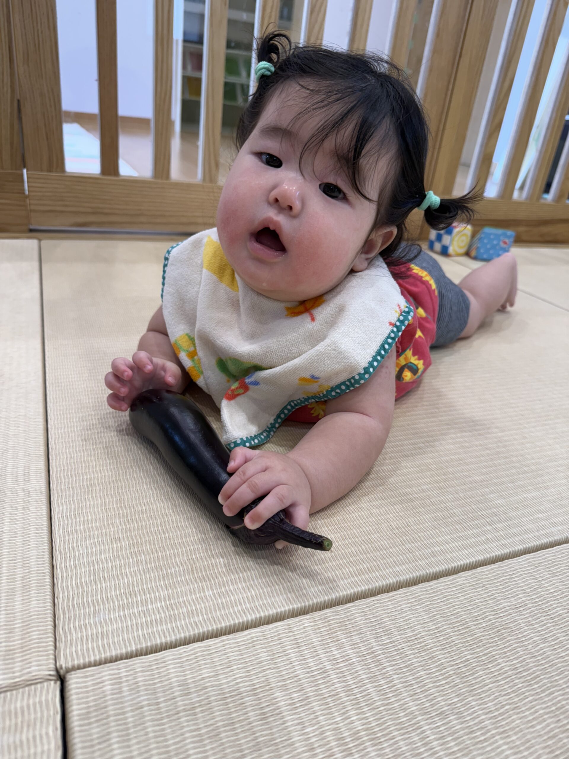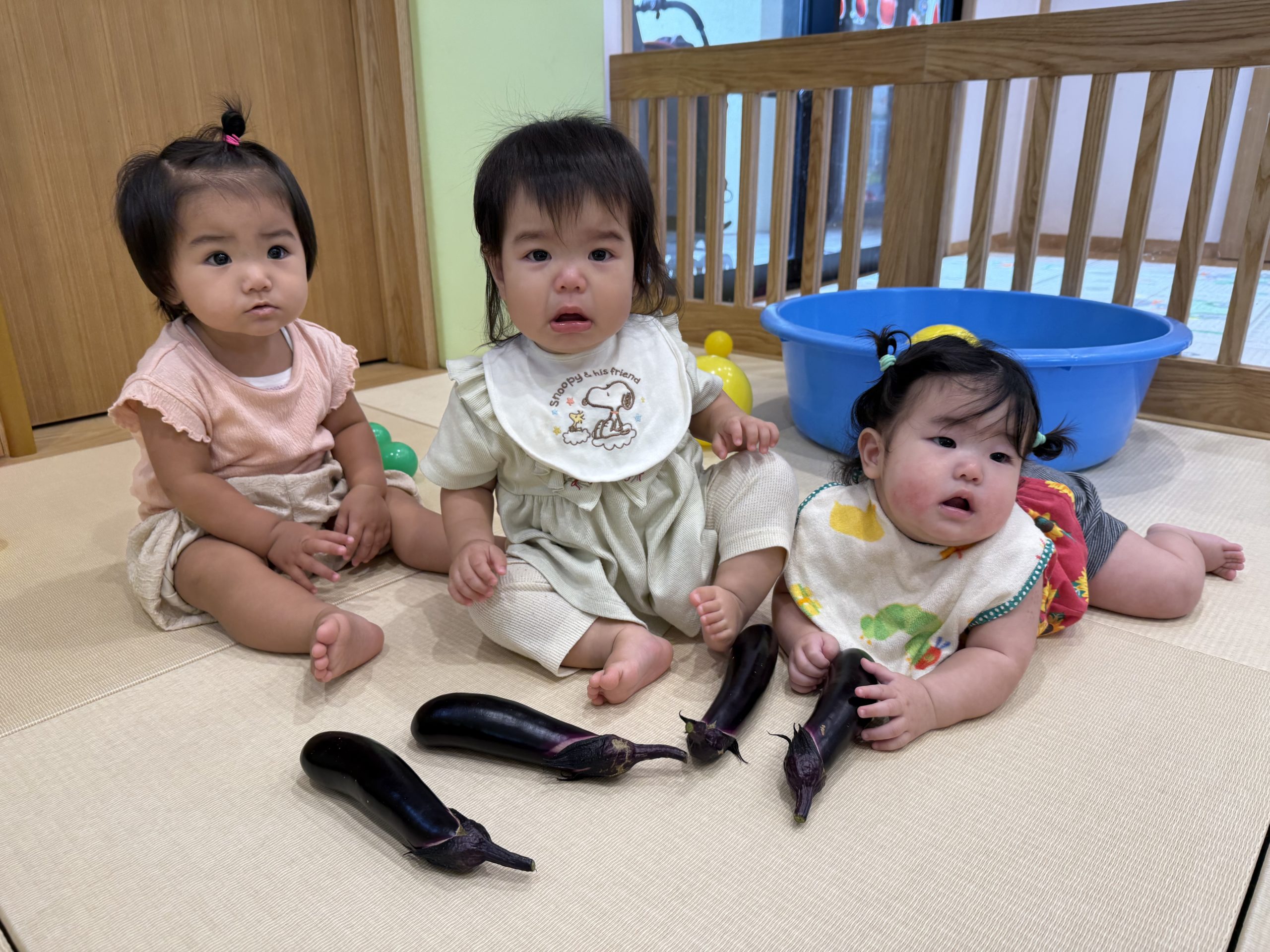 園庭の畑で育てているナス🍆も