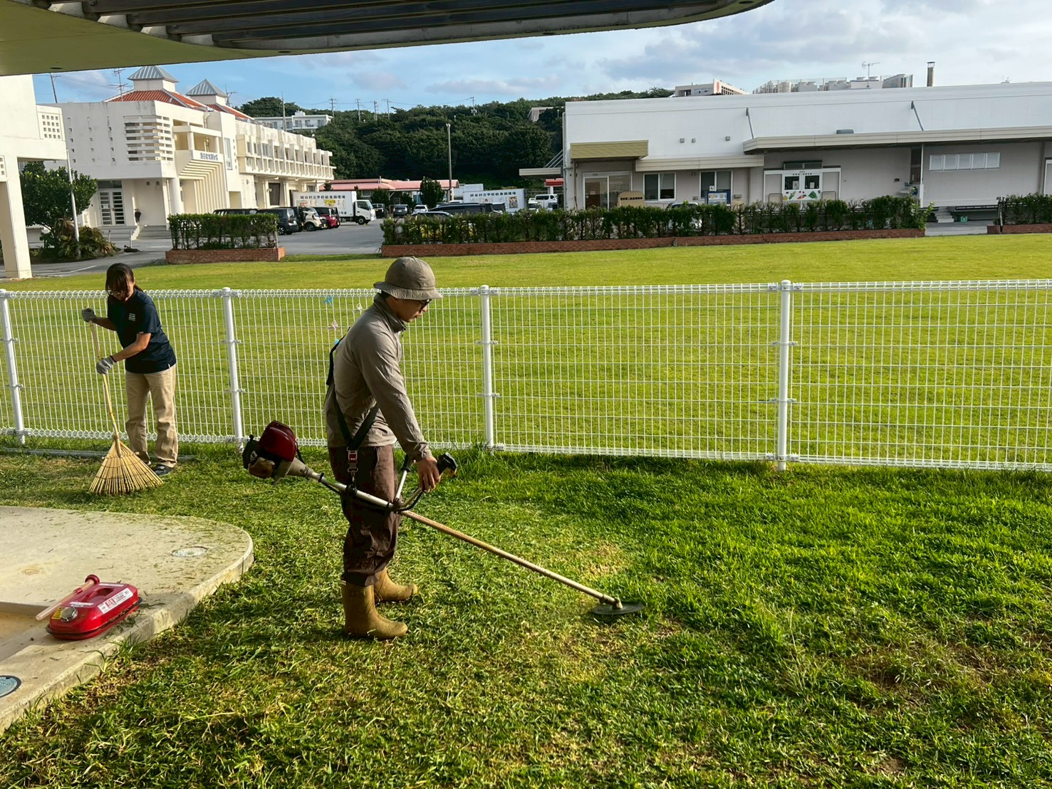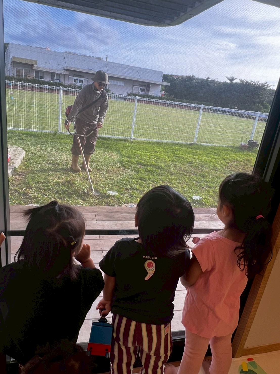 1日で園庭、園の周辺の草刈りを終えることができました