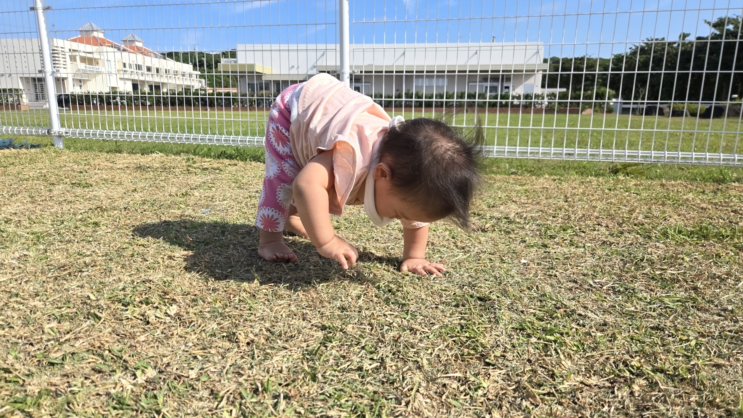 綺麗に刈られた芝生の上を